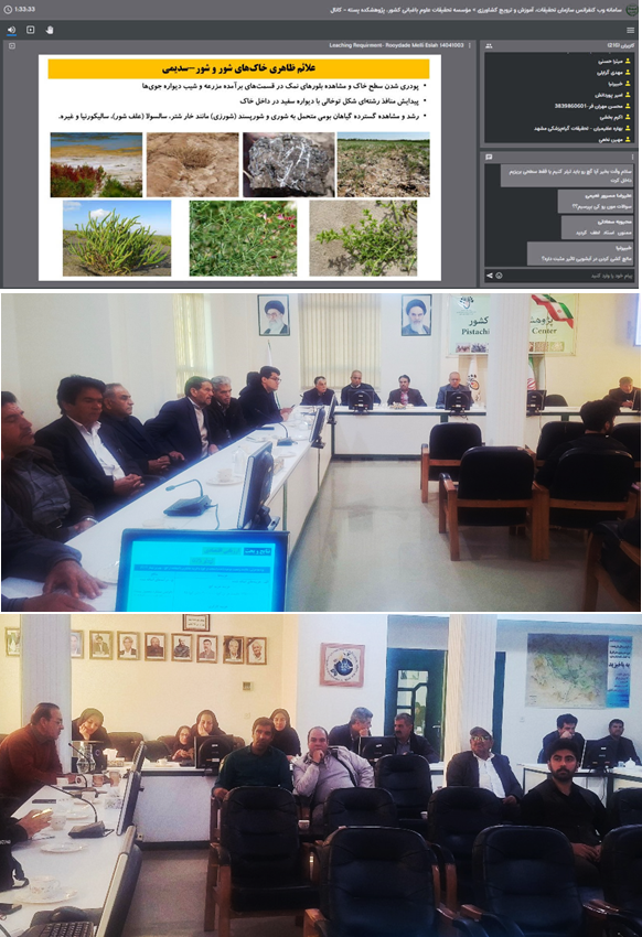 به گزارش روابط عمومي پژوهشكده پسته روز چهارشنيه سوم دي ماه ۱۴۰۴رويداد ملي اصلاح خاك و تغذيه در باغهاي پسته در سالن کنفرانس پژوهشکده به صورت حضوري و همچنين به صورت آنلاين با شركت حدود 300 نفر از كارشناسان، مروجان و باغداران سراسر كشور با محوريت اصلاح خاك در باغهاي پسته، مديريت شوري با تامين نياز آبشويي در باغهاي پسته، نقش مواد آلي در تغذيه و اصلاح خاك باغهاي پسته، تغذيه درختان بارور پسته در شرايط شور و بخش انتقال تجربيات در زمينه آبشويي و اصلاح خاك از ديدگاه باغداران برگزار گرديد.