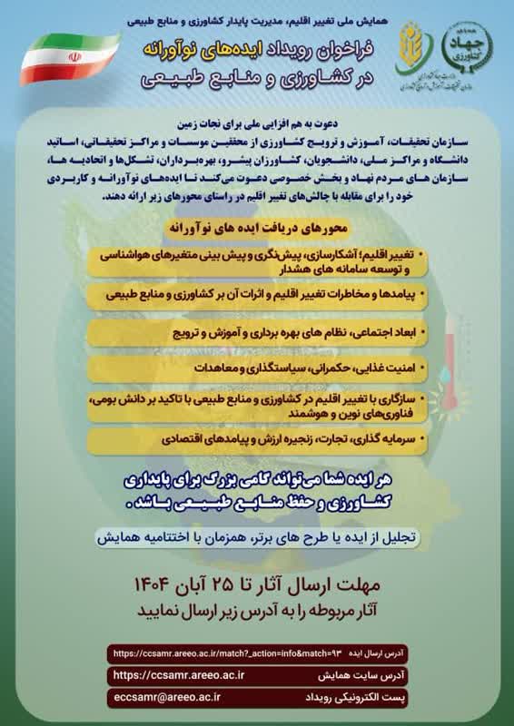 همایش تغییر اقلیم، مدیریت پایدار كشاورزی و منابع طبیعی 10 و 11 آذرماه 1404 سهشنبه, 11 نوامبر , 2025 9:27 ق.ظ نویسنده: ادمين سايت پژوهشكده دستهبندی: اخبار, اطلاعیهها